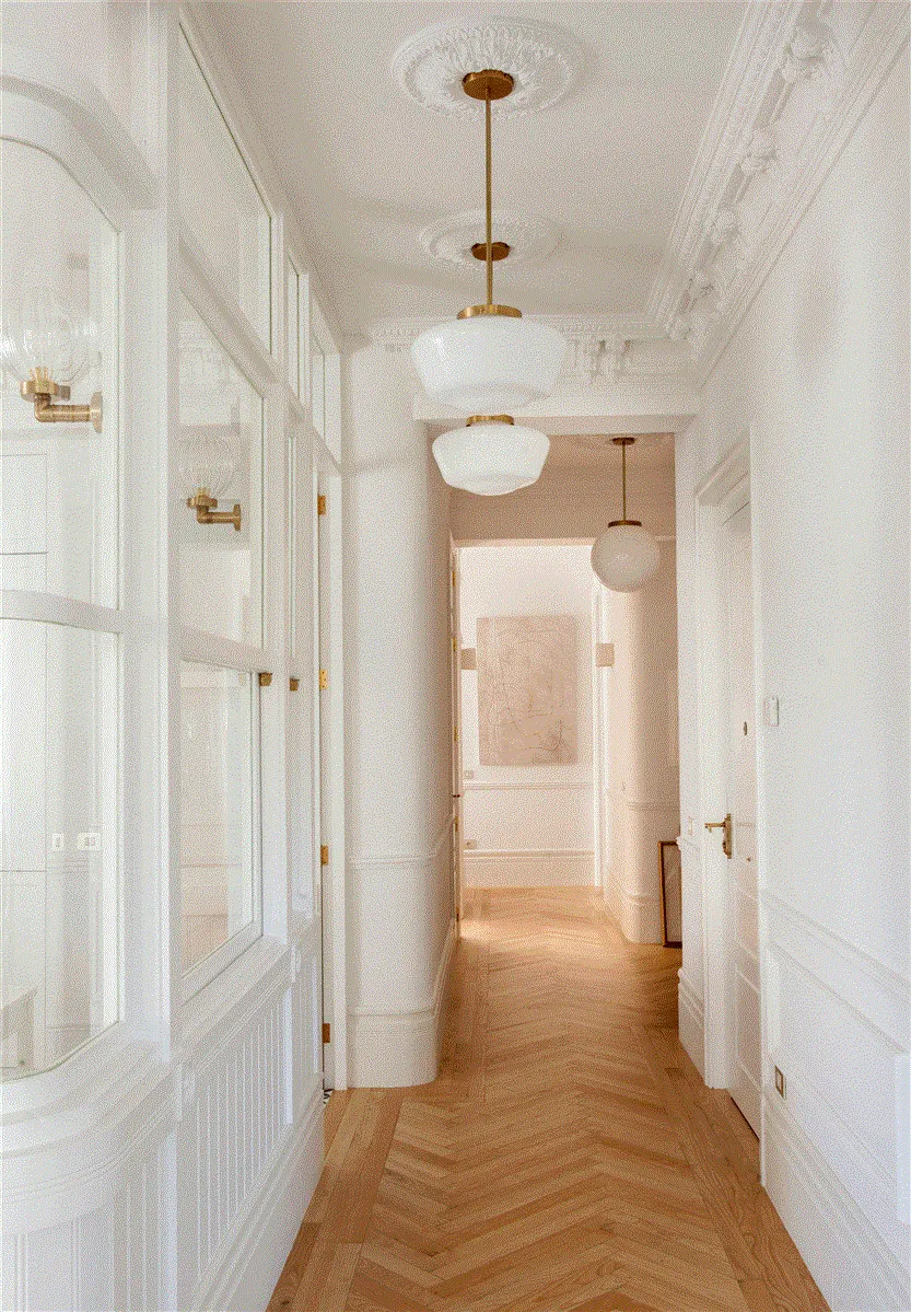 一些装饰元素,如地毯、Pierre Paulin 椅子和照明设备采用了浅色系,以在这一浓郁的装饰中创造对比。