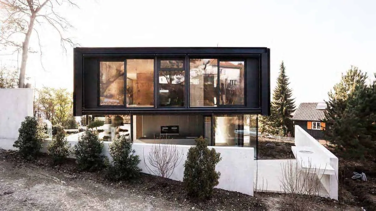 由于这是一个独立地块,建筑规范相当灵活,主要要求是遵守规定的深度和高度。主要任务是实现扩建体量的合理实施。主体结构由多个混凝土板构成,采用锯齿形平面设计。凹凸部分的相互作用确保了建筑结构的稳定平衡。铝制二次结构结合穿孔板用于立面收尾。天然涂装的阳极氧化铝合金不仅用于立面和二次结构,还延续至外部连接和内部空间,包括厨房岛台。克制的灰铝配色方案延续至混凝土地面、纹理墙面和天花板上。温暖的点缀通过休息区和厨房中的烟熏桉木家具体现。
