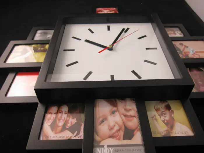 使用相框来创造独特的钟表。它们的魅力在于可以根据想要记住的时刻更换照片。
