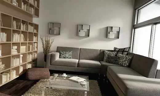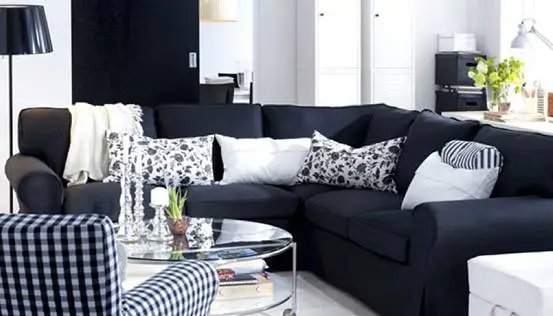 - L型沙发非常适合小客厅使用。虽然看起来像一个大而笨重的家具,但为什么不能呢?在小客厅里,通常无法同时放置沙发和扶手椅。