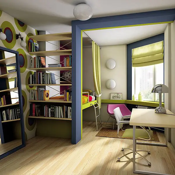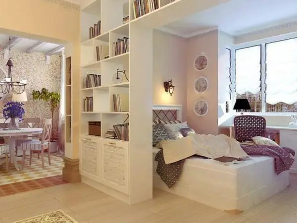 一个现成的装饰方案是划分区域,将房间分为卧室区和休闲区。一个出色的分隔工具将是封闭或开放的书架、柜子或隔断。