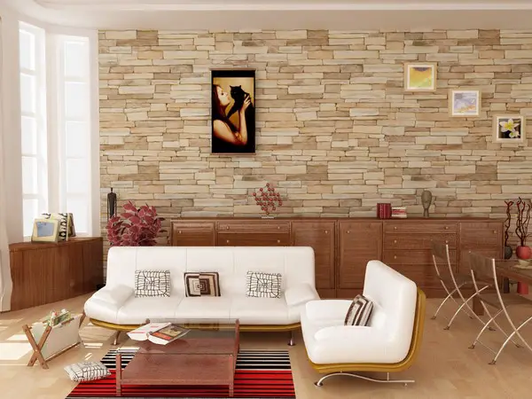 客厅中的石材将增添某种独特性和原创感。此外,装饰石材易于安装,使其使用更具吸引力。对于角落收边,统一纹理的人造石会很合适;而石材马赛克则在墙面效果有趣。这样的装饰元素总是能吸引目光。