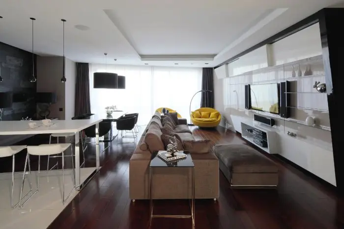 一个设计良好的餐厅客厅可以非常现代和时尚,就像下面的照片一样。关键是遵循室内设计师的简单建议。