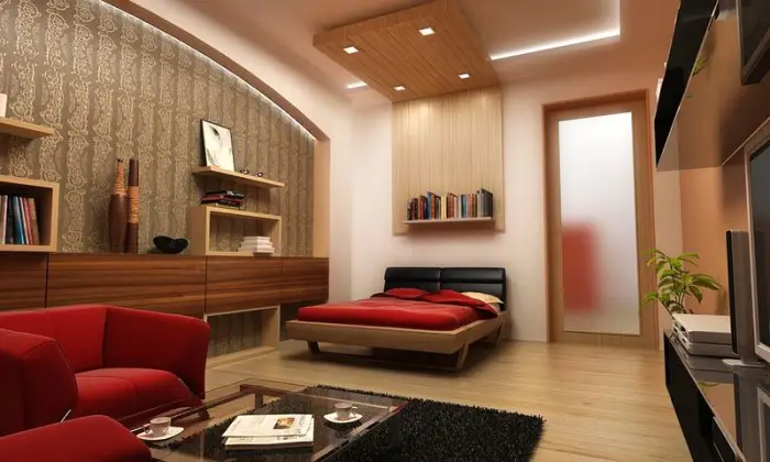 客厅-卧室的室内设计应根据您的喜好和技术条件来选择。即使房间面积较大,也仍有一些解决方法。