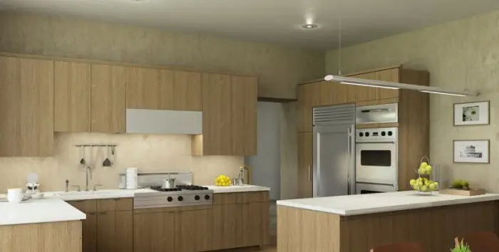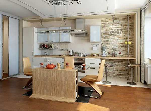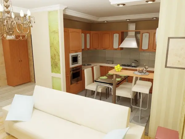 - 当厨房与生活空间结合时,强大的抽油烟机是必不可少的。同样重要的是拥有一台安静的冰箱,因为其运行时的噪音可能会破坏整个房间的氛围。