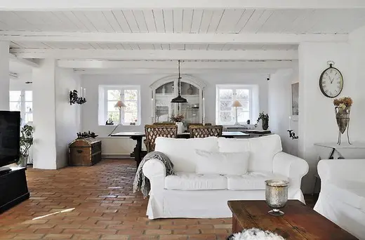 白色色调。当下的流行趋势是不同层次的白色与柔和色彩的搭配。这种搭配的典型例子包括普罗旺斯风格和北欧风格的客厅,其中使用漂白木材、浅色墙面处理和家具软包。即使在装饰中存在其他颜色、色调和阴影,这样的客厅仍被视作白色。