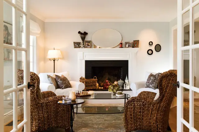 当下的流行趋势是不同层次的白色与柔和色彩的搭配。这种搭配的典型例子包括普罗旺斯风格和北欧风格的客厅,其中使用漂白木材、浅色墙面处理和家具软包。