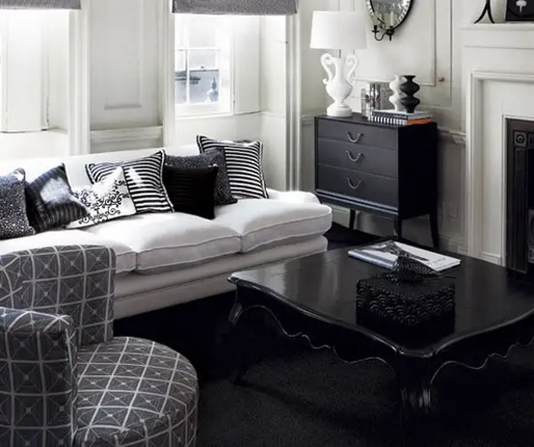 随着时间推移,单色调的室内设计可能会让居住者感到压抑。因此,黑白配客厅设计通常会加入精心挑选的鲜艳点缀,为装饰增添充满活力的颜色。