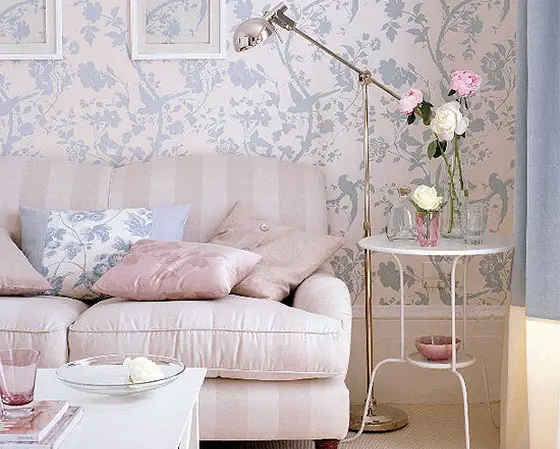 要扩大空间,可以使用细小图案的壁纸。如果所有墙壁都使用大图案,反而会缩小空间,但仅在一面墙上使用这种图案可以视觉上扩展客厅。