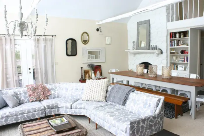 照片 1 — 客厅中的角落沙发,与餐厅结合