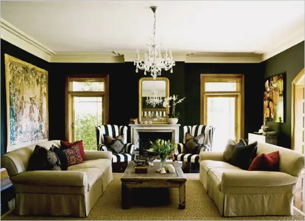 带有红色沙发或绿色沙发的客厅比深色家具的客厅更具情感和活力。
