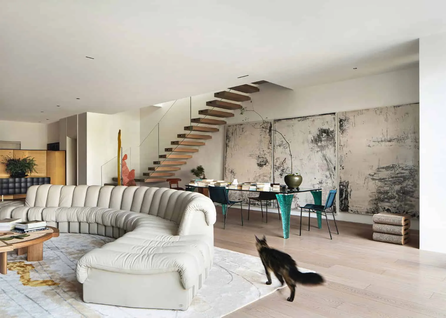 Pinterest您是否希望为客厅设置一个书架来整理您的大量藏书?那么这款DM书架会令您喜欢,其设计具有不同高度的隔板,室内设计师能够为房间增添更多动感。为了使其成为视觉焦点,他们使用了深灰银漆涂装,与以中性色调为主的客厅形成对比。