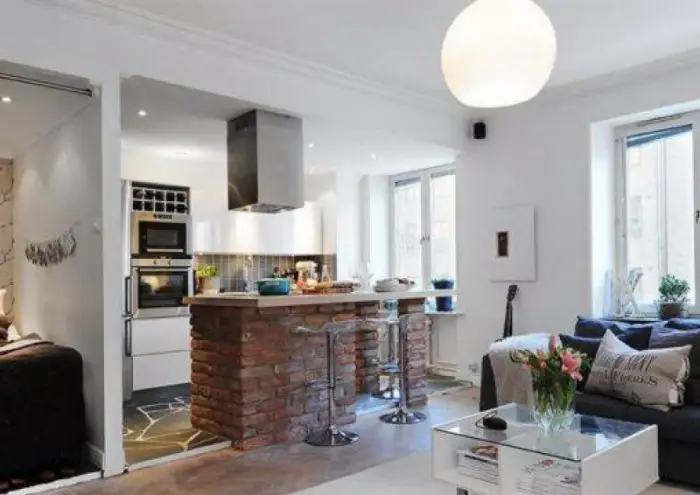 - 众所周知,人需要一个独处的空间。在一居室公寓中,唯一的独处空间是浴室。然而,在一居室公寓中,厨房与客厅一体化的设计可以作为卧室——一些人可能不喜欢在厨房睡觉的感觉。