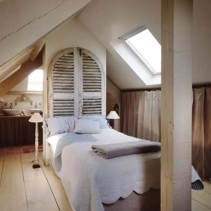 阁楼风格的卧室也容易找到 — 你只需要关注舒适性元素,考虑到天花板高度有限。