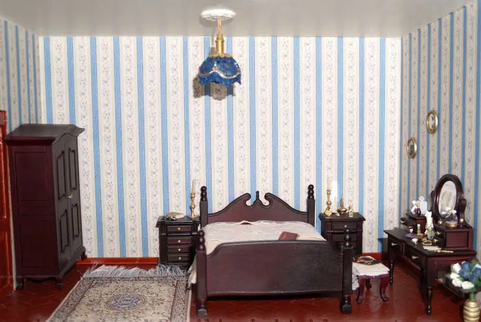 成品卧室家具套装可以与壁纸和价格低廉的复制品巧妙搭配,为整个组合定下基调。