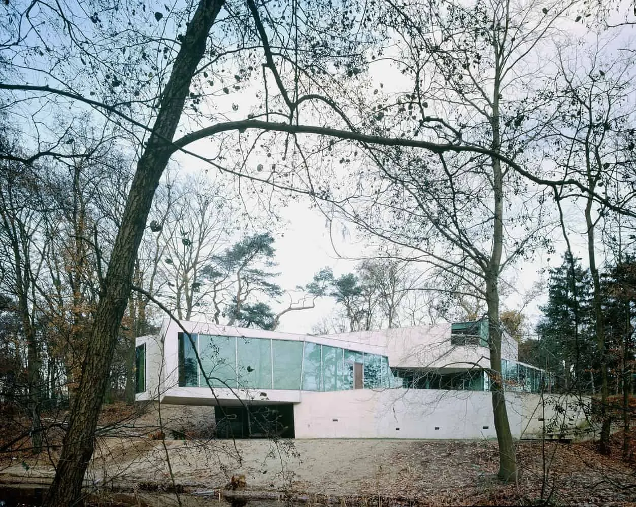 住宅采用混凝土和石质基础及墙体、粘土墙、Vierendeel结构以及大量可移动的大面积玻璃面板作为主要建筑材料。这些设计使在倾斜的露台结构上避免柱子或其他视觉干扰成为可能,从而确保每个社交和居住空间都能拥有无遮挡的独特湖景视野。