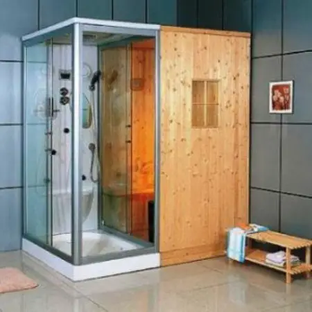 在木屋中,医生本人建议安装带桑拿的浴缸。
