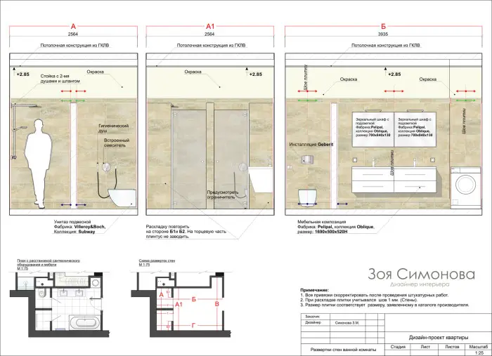 - 墙面(地板和天花板,如果项目要求)的瓷砖布局图;