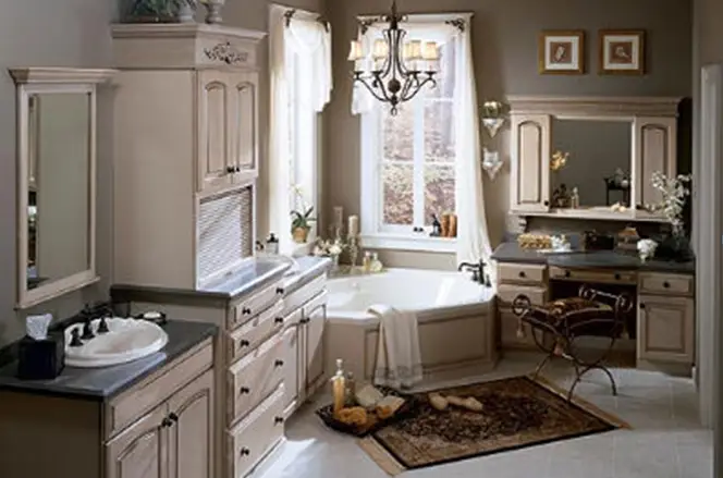 如果你幸运地拥有一间比上述房间稍大的卫生间,我们提供一些不同的设计建议。
