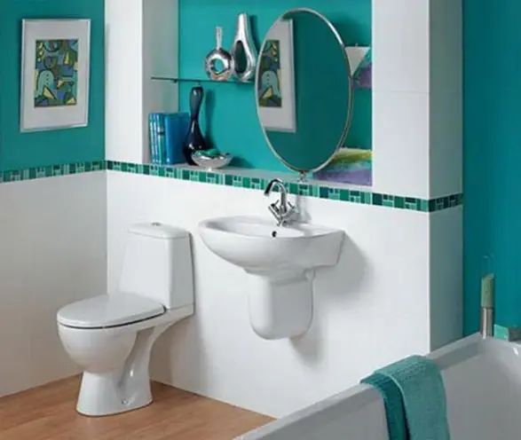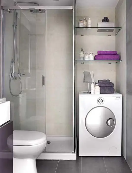 不要忘记各种柜子、架子、挂钩和其他装饰物品。下面的照片展示了几种在浴室和厕所设计中放置它们的方式。
