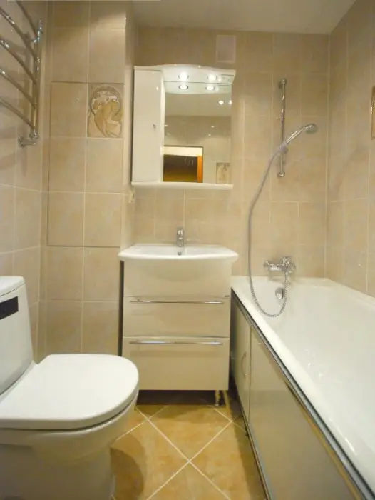 在新建筑或类似“勃列日涅夫时代”的公寓中翻新浴室时,保留实用空间非常重要,节省出来的面积应分配给安装洗衣机、设置洗衣篮或存放家用化学品的柜子。