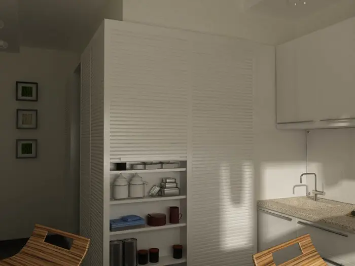 图6 — 厨房储物设计的原创想法:用百叶窗替代传统推拉门的架子