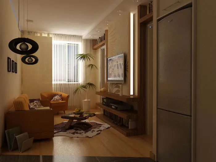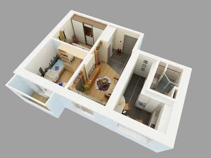 三居室公寓P-44T设计:将“两居室”改造成“三居室”公寓。两居室公寓是已婚夫妇的理想居住空间:卧室与客厅区域分离,并具备利用阳台或露台组织工作区的所有条件。