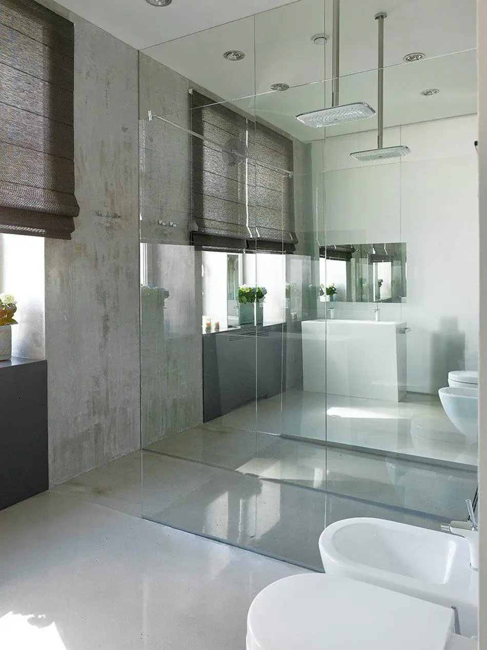 房间与主人卧室相邻,仅由一层半透明玻璃隔断分隔。