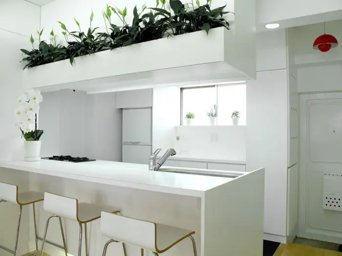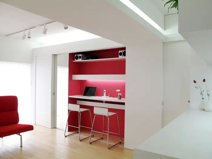 图6 — 日本工作室公寓(37平方米)。欧式厨房过渡到休闲和工作区域