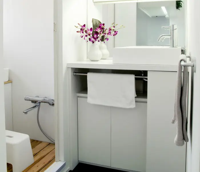 图7 — 日本工作室公寓(37平方米)。紧凑型浴室(浴缸被淋浴间取代)