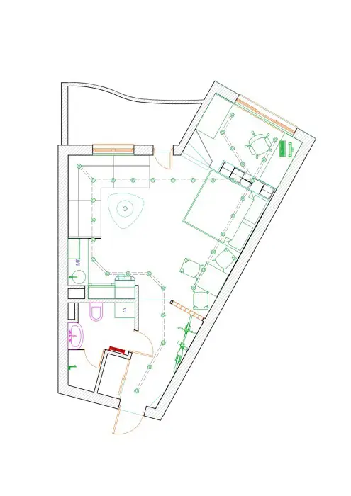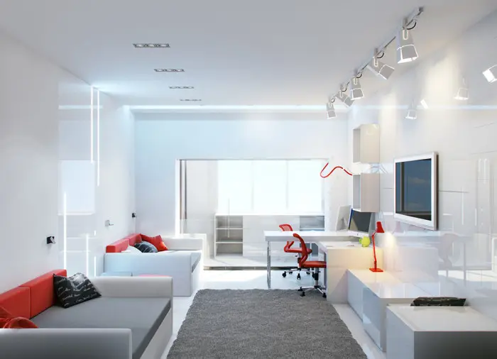 通过拆除墙体,您不会消除客厅或走廊,而是将这些空间与其他房间结合。在工作室公寓中保持区域划分非常重要。这可以通过家具的特殊布置、灯光组织或墙面、地面和天花板的装修来实现。