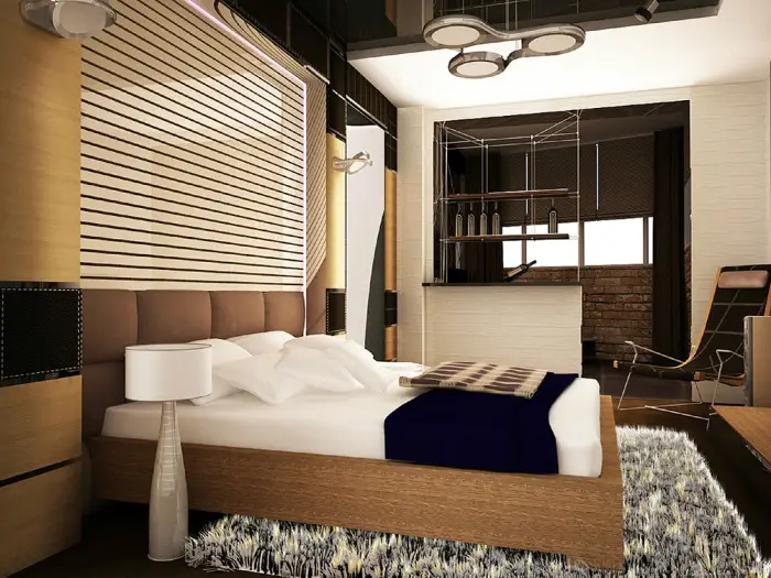 现代室内风格是质感和构图的结合。这一点在卧室的设计中清晰可见。