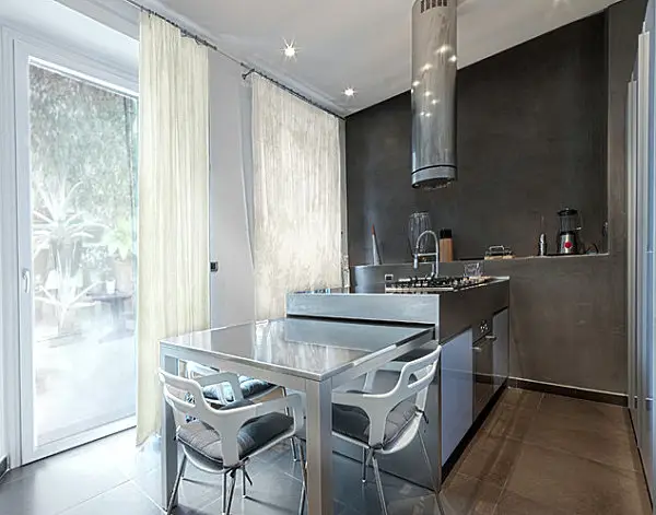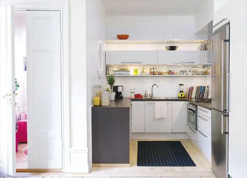 - 摒弃门!用滑动门替换标准的旋转门,甚至可以完全移除厨房门,将空间与客厅、餐厅或卧室相连(这需要一个强大的排气扇)。