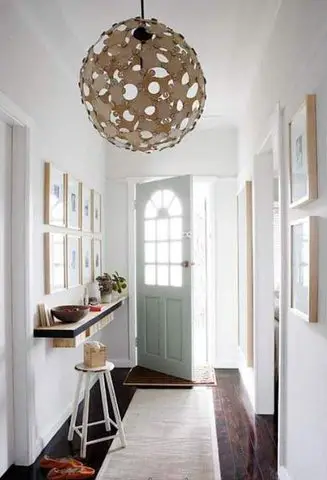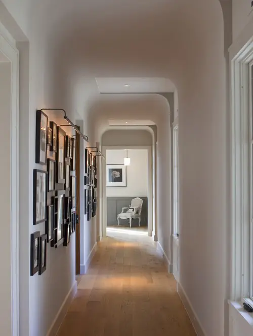 这种照片布置不会占用过道的实用空间,但却极大地美化了它。