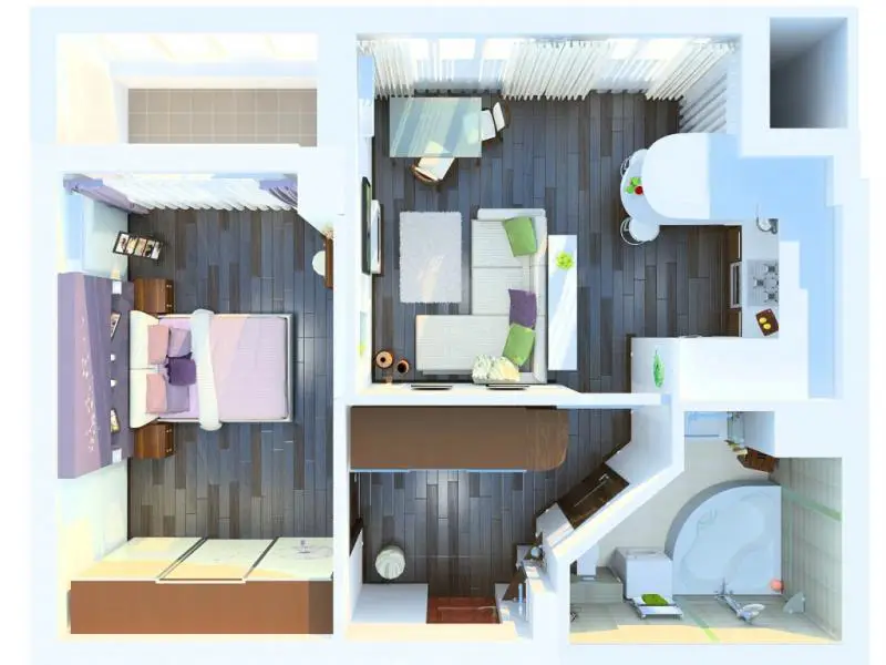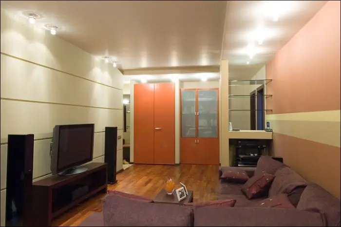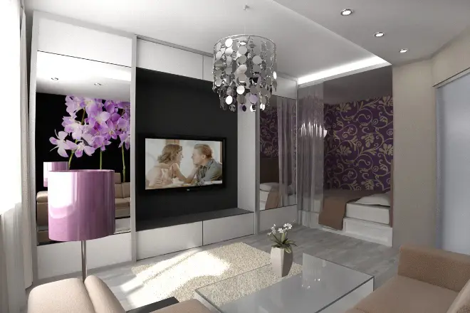 在较大空间中,隔断的一种选择是镜面或哑光滑动隔断,外观像衣柜门。另一种更为独特的方式是用衣柜分隔空间,在房间的不同部分之间留出开口。在天花板很高的公寓中,还可以悬挂木质夹层平台,足够用于放置睡眠区域。这种设计使联合客厅与卧室几乎完全释放为客厅空间,同时在“二楼”创造出宽敞舒适的睡眠区。