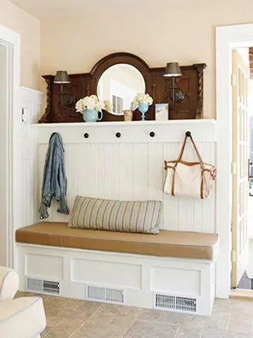 让每一件你拥有的物品都有其固定位置。规划你的门厅设计并考虑新室内元素的布置。从你摆放家具和挂上最后一根衣钩的那一刻起,储物顺序就不应改变。如果门厅里的每一样东西——从柜子到车库钥匙——都有固定位置,那么将会有明显更多的空余空间。