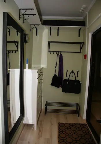 门厅的装饰元素也应遵循“美观且实用”的原则:墙面可以用小型黑板(离开公寓时可以快速写下便签)装饰,木质钥匙盒也很好看(如果你养成把钥匙放在这个槽里的习惯,钥匙就不会丢失)。设计师灯具也非常有装饰性。选择很多。
