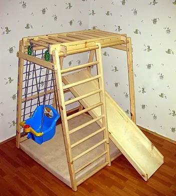 当涉及到在儿童房内创建游戏区域时,您可以选择安装梯子或体操环悬挂装置:无需安装的梯子价格低至75美元,而组合单元——小型瑞典墙——起价为132美元。对于7岁以下儿童的小型游戏套装,预计需支付210美元起。