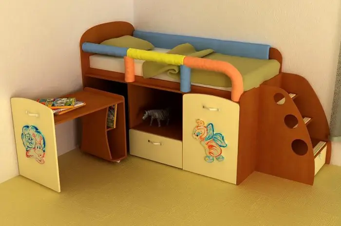 为了避免花费大量时间寻找床、桌子、衣柜和其他儿童房间物品,您可以购买一套完整的家具。例如,一个针对幼儿的家具包,由两个不同尺寸的床头柜、带有开放隔板的衣柜、衣物存储单元和一张床组成,平均价格约为450-610美元。