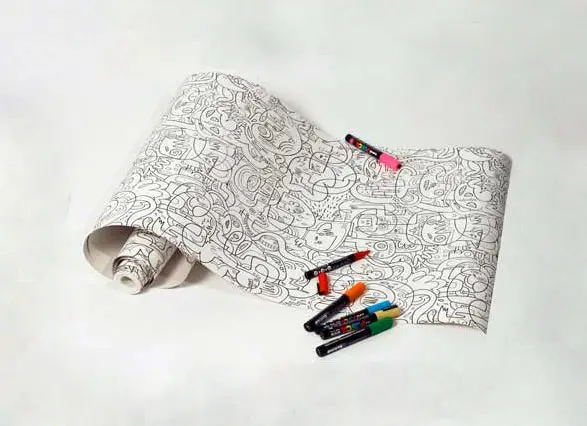 在规划儿童房的装饰时,别忘了所有孩子都喜欢画画。因此,一面墙可以贴上白色壁纸或专门购买的可打印纸。