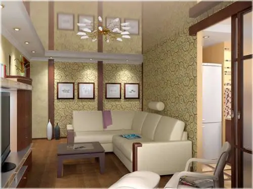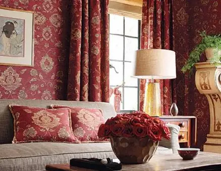 - 客厅越小,壁纸应越浅。然而,深色可以营造亲密感和浪漫氛围——一些特别的人可能会尝试将客厅做成酒红色。