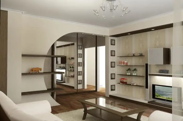 如果您的公寓由两个以上房间组成,那么客厅只会起到放松和接待客人的作用。然而,如今拥有大公寓的业主并不多见。在两居室或一居室公寓中,客厅承担多种功能——它可以与卧室、厨房、走廊或儿童区结合。