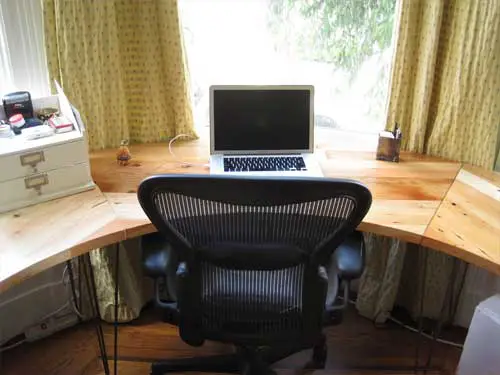 - 工作区。凸窗提供大面积窗户和充足的光线,是一个理想的办公室。在这里工作舒适,客厅不会杂乱:你可以设计一个矩形客厅,少一个功能区域。