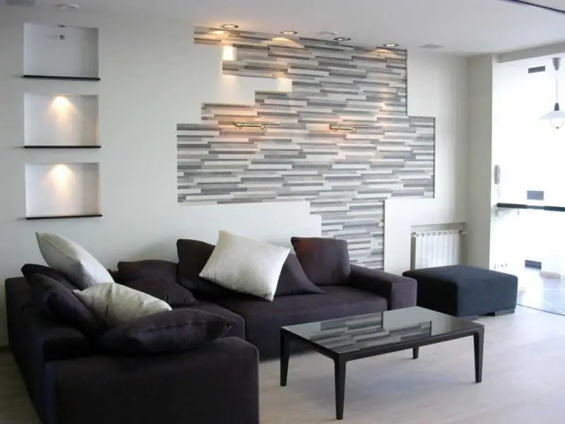 带电壁炉的客厅设计。对于由于技术限制无法安装传统木制或甚至燃气壁炉的城市居民来说,这是理想的选择。当然,它并非真正的火焰。然而,如今的电壁炉制造商提供了令人印象深刻的功能。“绘制”的火焰不仅完全模仿真实火焰,而且通常还具备传统加热功能,甚至能产生特有的声音。