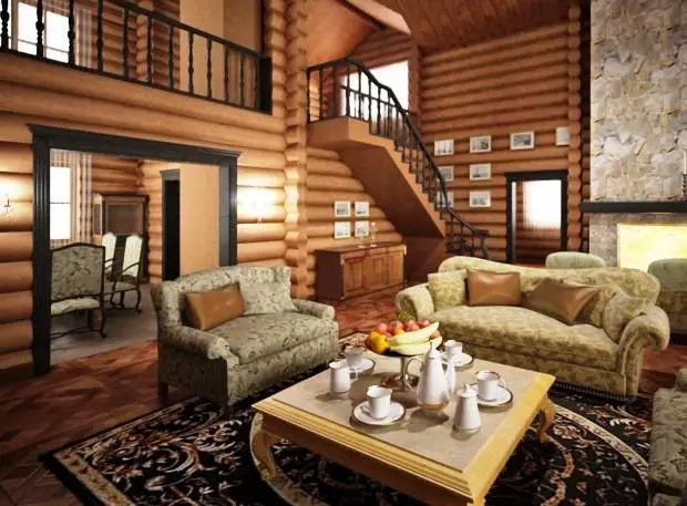 木屋的客厅内部。夏日在乡间别墅的理想选择