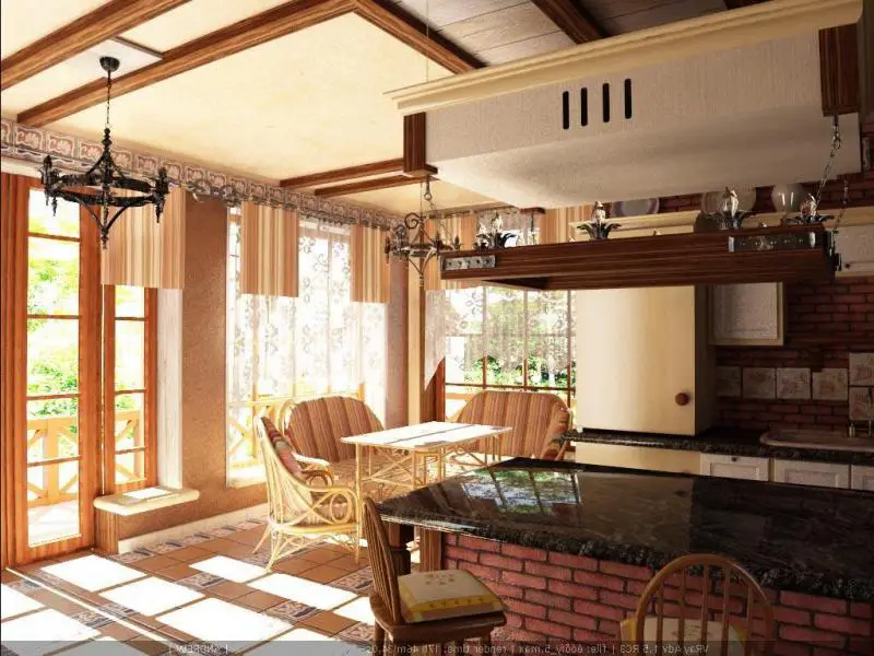 当然,对乡间别墅客厅及其装饰有相当严格的要求。首选天然材料——甲板板、拼花地板。可以选择看起来像木头的复合地板,只要图案尽可能自然。乡间别墅的墙壁和天花板可以用天然色调的木饰面完成。