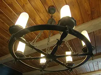 关于照明,造型仿蜡烛或像悬挂轮子的锻制吊灯非常适合这里。