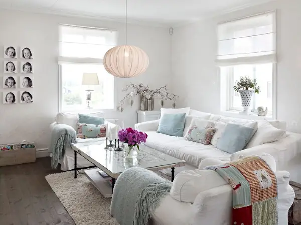并非所有东西都必须是雪白色。您可以选择不同色调的家具,或用其他颜色装饰地板、墙壁或天花板。个别细节不会破坏整体印象。