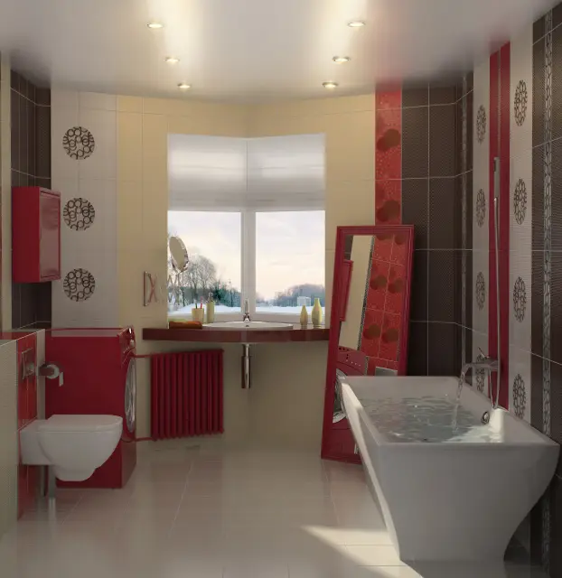 红色是这个设计项目中使用的主要鲜艳颜色。在“两居室”中,它可以在柔和的奶油色调、柔和的酒红色甚至鲜艳的猩红色中找到。