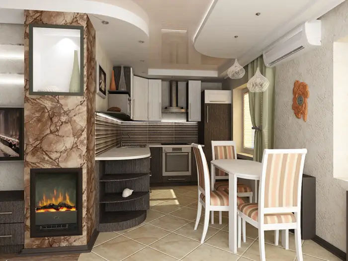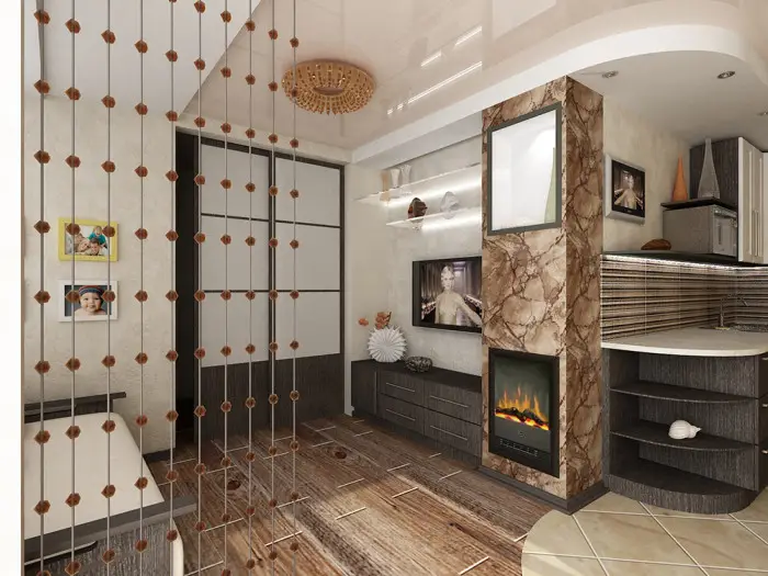 图 6 — 带有涂漆壁炉的柱子在厨房和客厅之间起一种边界作用。如果需要,可以将绘画替换为装饰性电壁炉,但遗憾的是,在赫鲁晓夫住宅中无法安装真正的壁炉